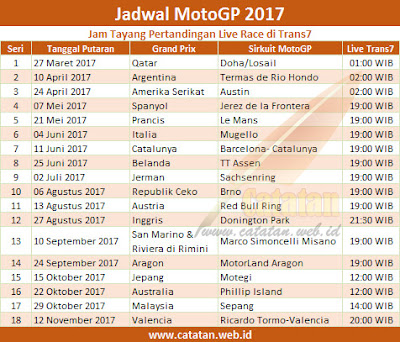 Jadwal MotoGP 2017 Lengkap Jam Tayang Trans7 Live Race ...